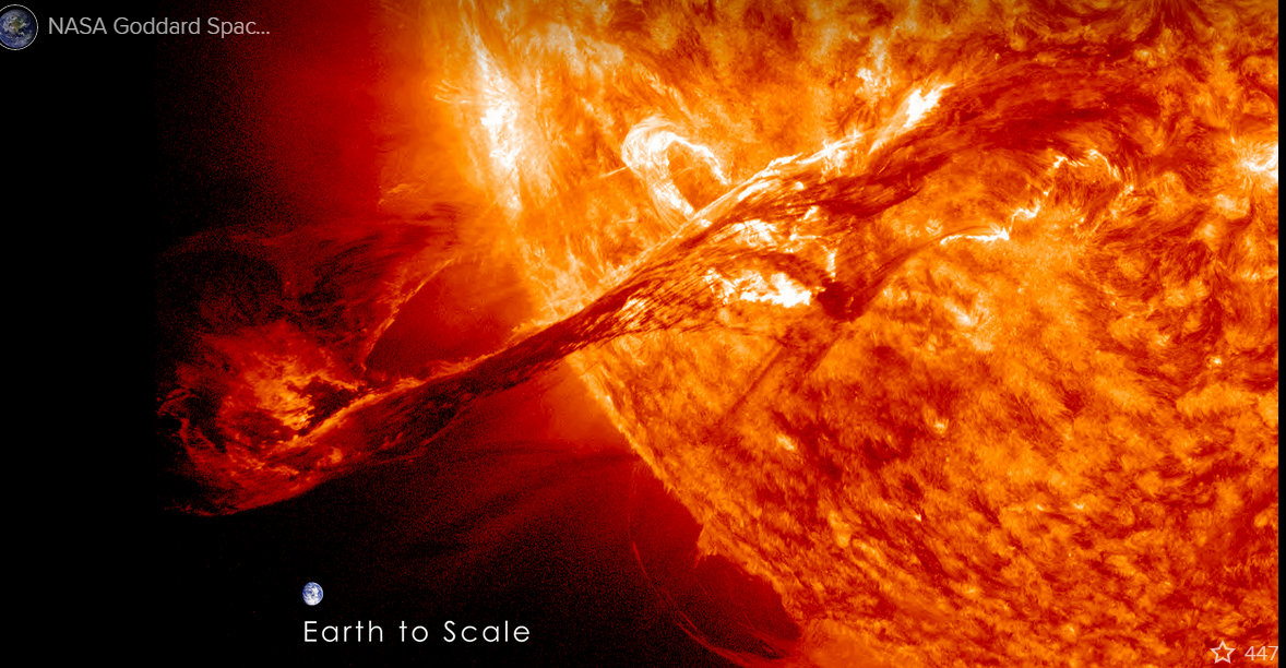 SDO_Earth_scale-EDIT2 01/08/2015 1178 × 612 Space: The final frontier Magnificent coronal mass ejection (CME) erupts on the Sun with Earth to scale.